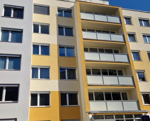 - výměna stávajícího zábradlí na lodžiích za nové hliníkové se skleněnou výplní